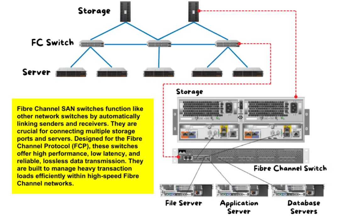 – Mạng lưu trữ (SAN): Cung cấp liên kết chuyên dụng, nhanh chóng và đáng tin cậy giữa máy chủ và bộ lưu trữ.